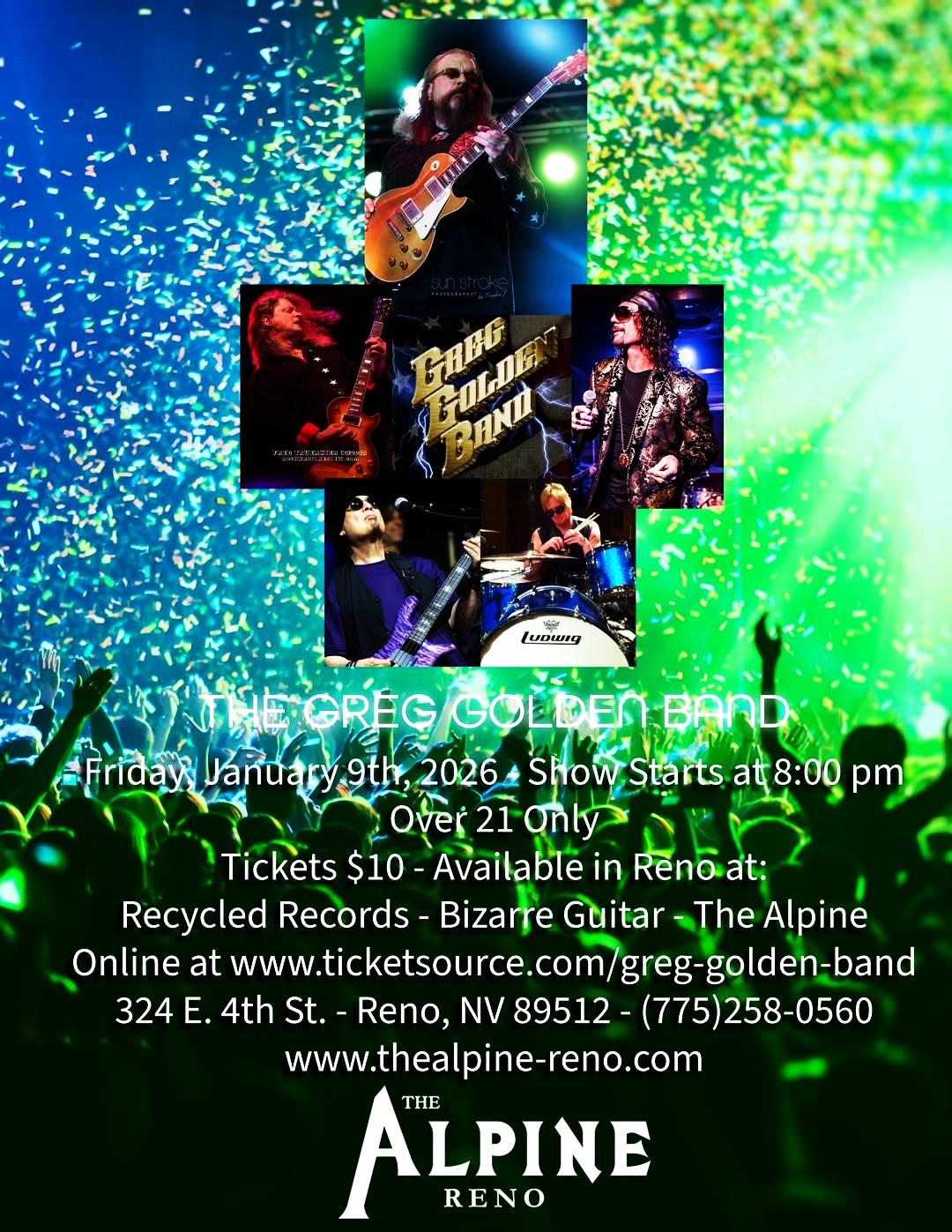 Reno, get ready to rock! 🎸 The Greg Golden Band hits The Alpine on Friday, Jan 9th!