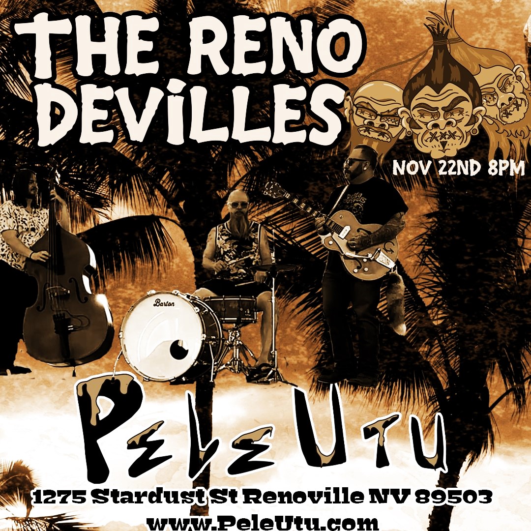 The Reno DeVilles are a rockabilly trio from Reno, Nevada, known for their playful, retro-infused sound that mixes surf, country, and classic rock ’n’ roll. Their performances are high-energy and nostalgic, featuring upright bass, tight rhythms, and tongue-in-cheek charm that keeps audiences rooted in the golden age of rockabilly.