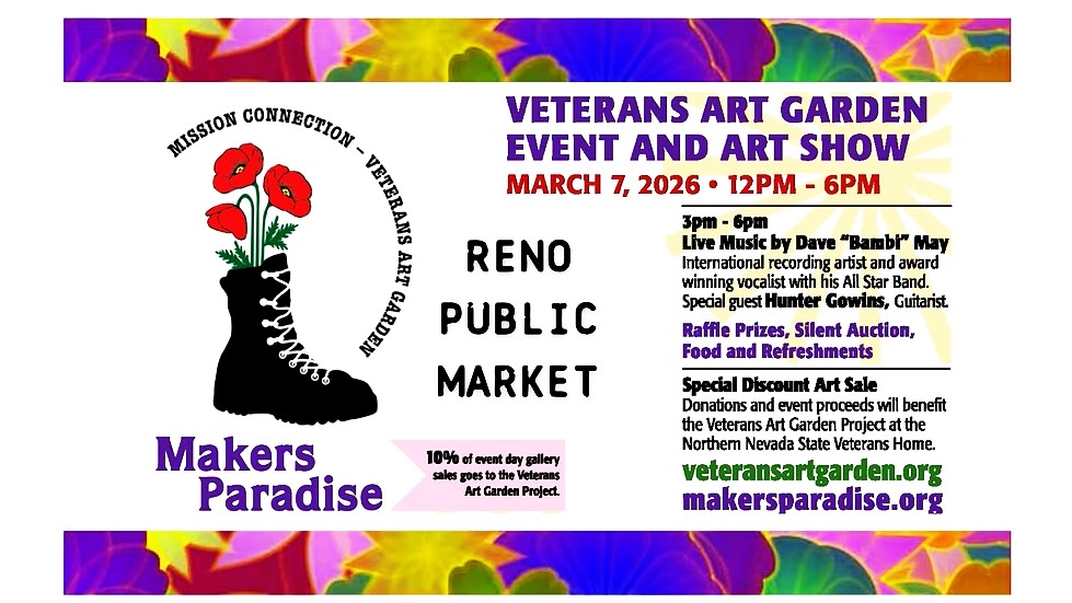 Join us at Makers Paradise for an afternoon of art, music, and community in support of the Veterans Art Garden Project at the Northern Nevada State Veterans Home.