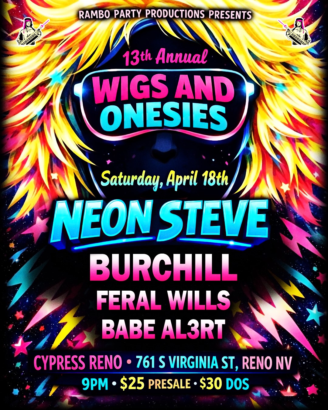 The 13th Annual Wigs and Onesies dance party is BACK at @cypress.reno featuring a wigged out and wild lineup: