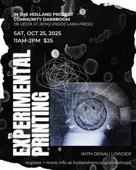 This workshop is part of the Holland Project Community Darkroom Pop-up taking place inside of Laika Press at 136 Vesta St, Reno, NV (located next door to Holland). For questions please contact alisha@hollandreno.org!