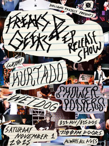 Itβs official, βFreaks & Geeks, Foreverβ EP release show at Holland Project November 1st! This has been a long time coming, we canβt wait to share the night with our friends Hurtado (SLC), Shower Poopers, Wetdog, and all of you, canβt wait to see you there!