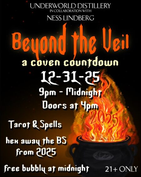 lessWednesday, December 31st • 9 PM to Midnight • 21+ OnlyForget the packed clubs and sloppy parties. We’re spending New Year’s Eve doing something actually useful, like torching every last scrap of 2025’s BS and setting ourselves up for a year that behaves. Ness Lindberg will be leading the coven from 9 PM to midnight with spell work designed to banish the bad vibes, break the leftover curses, and manifest something worth waking up to in 2026.We’ll be doing ceremonial burnings for anything you’re ready to leave behind, pouring Persephone’s Descent cocktails at half price, and handing you a free glass of bubbly at midnight so you can toast the new year feeling lighter, sharper, and absolutely unbothered.No cover. Show up, let it go, and step into 2026 like you mean it.Doors @ 4PM.