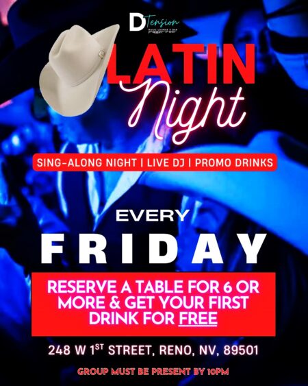 less🔥LATIN NIGHT FRIDAYS at DTension🔥Where the música hits different and the vibe is caliente 💃🕺🎤 Sing-Along Night🎧 Live DJ bringing all your favs: Reggaeton, Bachata, Cumbia, Merengue & Latin House🍹 Promo drinks to keep you dancing all night💥Reserve a table for 6+ and your first drink is FREE📍248 W 1st Street, Reno, NV⏰ Group must be present by 10PM to hold table.¡Vámonos! Let’s light up the dance floor every Friday 🔥#LatinNight #DTensionFridays #RenoNightlife #BailaTodaLaNoche #DTensionBar