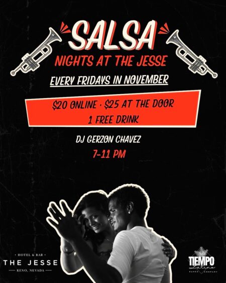 🎺 SALSA Nights at The Jesse! 💃🕺Feel the rhythm, move your body, and light up your Friday nights this November!📅 Every Friday in November🕖 7–11 PM📍 The Jesse Hotel & Bar, Reno, Nevada🎧 Beats by DJ Gerzon Chavez💵 Tickets:🎟️ $20 online (via Eventbrite)💰 $25 at the door🍹 Includes 1 FREE drink!