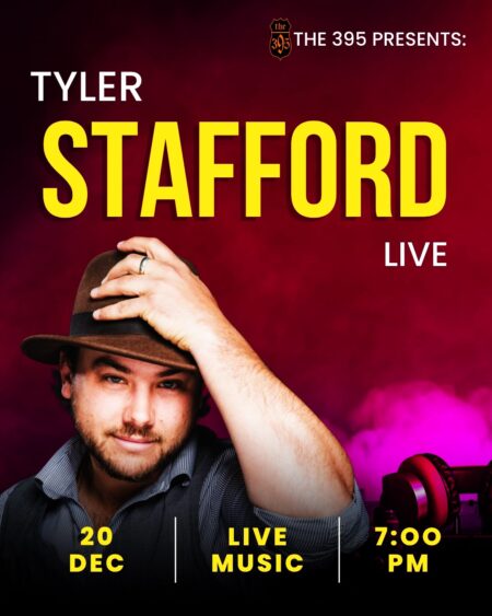 Bundle up and head to The 395 for a winter night of live music 🎶Tyler Stafford performs Saturday, Dec. 20 at 7 PM. Grab a drink, warm up, and enjoy the show! @tylerstaffordmusic