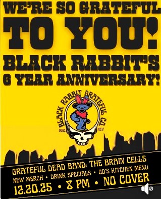 Get ready to celebrate @blackrabbitreno's SIXTH anniversary! This Saturday starting at 8 pm, enjoy the classic Grateful Dead tribute band, The Brain Cells, GD's Kitchen food truck offering smash burgers, Italian meatballs, Parmesan fries, and more! They'll be new mech and drink specials. All ages and no cover.About Black Rabbit Mead: Black Rabbit Mead Company makes cider-style meads with honey sourced from the Sierra Nevadas. They are Nevada’s first meadery.