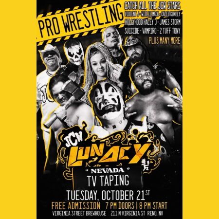 So get ready, Reno, the cameras are rolling, the ring is calling, and JCW LUNACY is bringing that wicked energy and uncut insanity straight to your city!Don’t miss your chance to peep the madness LIVE!